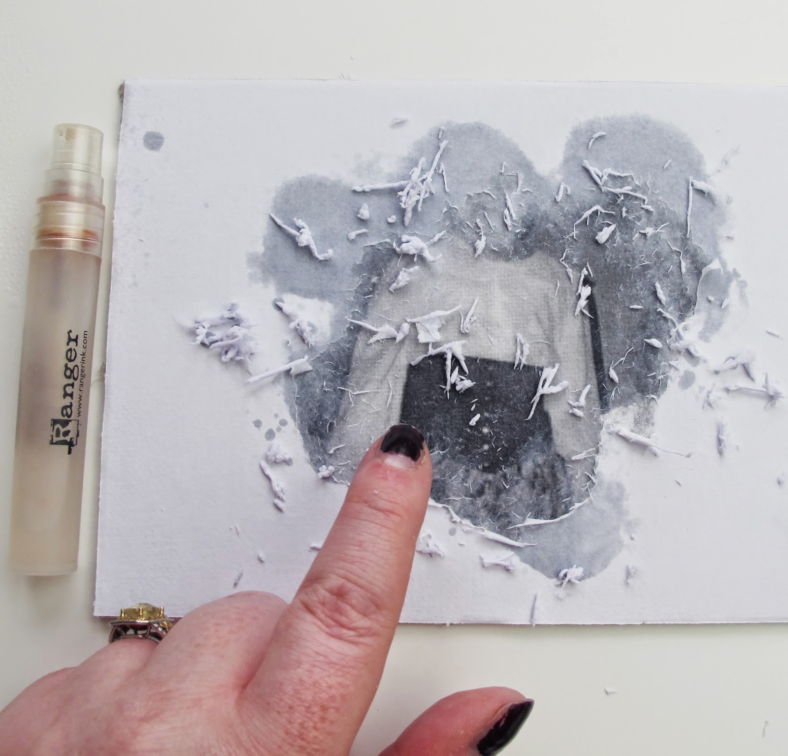 Using your fingers, rub gently to remove the paper – you should start to see your image revealed! don’t rub too hard or you could damage your image (some bits will come off anyway) and keep spritzing with water as you go