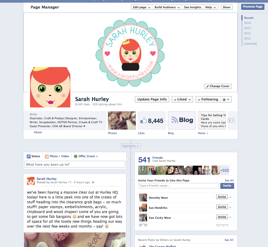 Content is Key! This is something that I’ve really only realised quite recently with the help of my assistant Lisa. I used to post around once a day, maybe something I’d put on my blog or a sneak peek picture. I was actually scared of posting, as a few times a week I’d post and then get one or two people ‘unlike’ my page, I thought maybe I was posting the wrong things or at the wrong times and I didn’t want to annoy people, I stopped posting so much… BIG mistake! It’s OK for people to unlike you, good, even! Because what you really want is engaged and active followers not a big number of disinterested people. So go ahead and post your updates, I’d recommend around 2-3 per day, but make them interesting, no one wants to know you’ve just had a cup of tea or you’re taking a break to watch the news. Share a sneak peek, a link to your latest blog post, your latest creation, or share something you’ve found on another page that you love. Since I’ve done this, my likers have increased dramatically! yes I’ve lost one or two along the way but thats life, people are sometimes fickle – it’s not personal and they will soon be replaced by new people who love what you do!