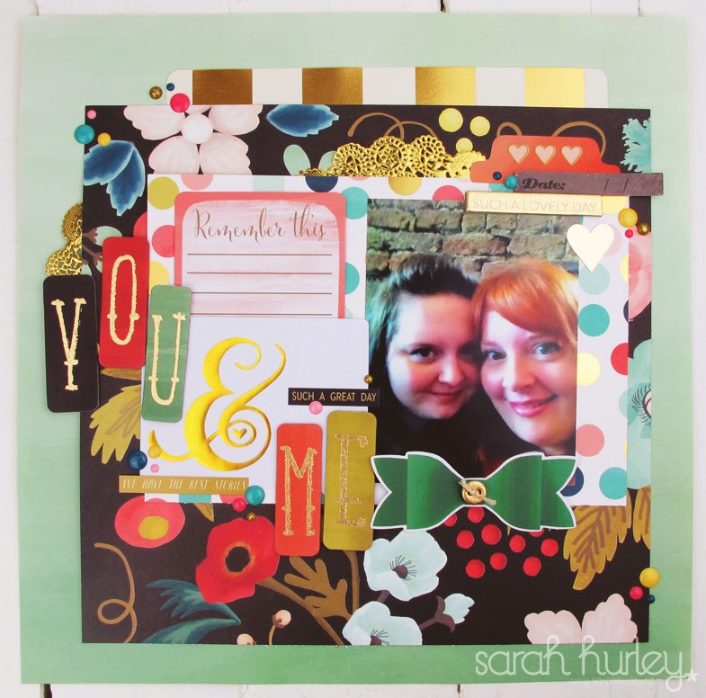 Today, I wanted to share a scrapbook page I made a couple of weeks ago using one of my favourite collections of this year, My Mind’s Eye ‘Market Street’ it has lovely bold colours and plenty of gold accents – what more do you need! I used my collection to make this layout of my sister and I messing about taking silly selfies on a day out…